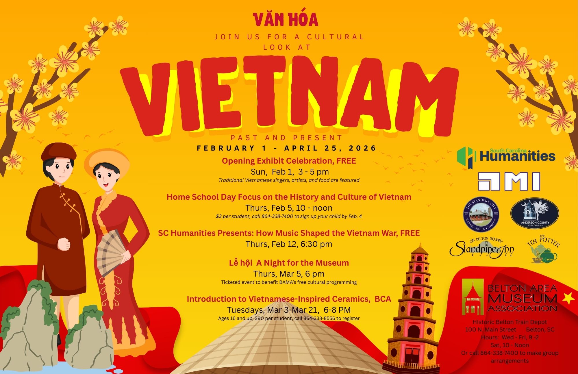 For Immediate Release From: Alison Darby, 864-958-5264 Date: Jan. 28, 2026 Subject: Community can partake in Vietnamese culture at Belton Depot This... Read More |